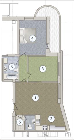 1. Гостиная - 22 кв.м. Меблирована новой гарнитурной мебелью в стиле модерн. В зале расположен удобный диван с креслом, журнальный столик, телевизор «Sony» 29". В гостиной имеется также комод, книжный шкаф, секция с полками. Кондиционер «Mitsubishi Diaya», телефон «Siemens».